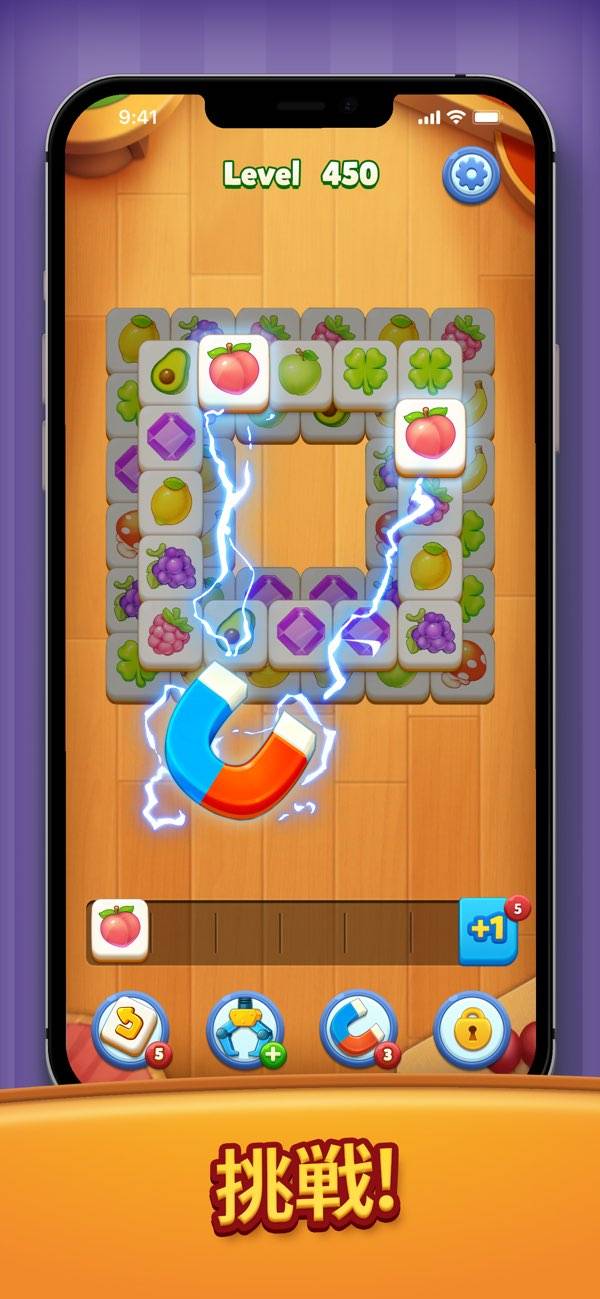 積まれたタイルの中から、同じタイルを3つマッチさせるパズルゲームです。一度に選択できるタイルは7つまで。上にタイルが乗っている状態だと、下のタイルは選択できません。選択できる数の制限を超えないよう、こまめにマッチさせて消していきましょう。