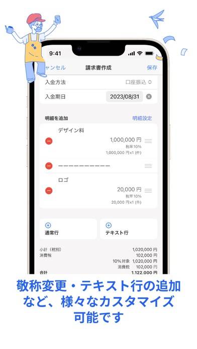 見積書や請求書の作成と管理ができるアプリ。アカウントを作れば、スマホとパソコンの両方から書類作成が可能です。ブラウザ版では、書類のテンプレートを設定したり、納品書なども作成できたりと活用の幅が広がります。本アプリの運営会社「freee」は会計回りのサービスも手厚く、売上管理や確定申告もラクになるメリットも。