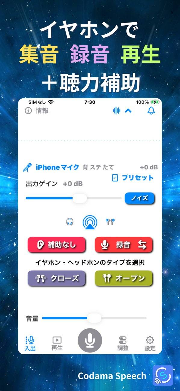 こだまスピーチ/マイク集音+聴力補助+録音+再生+文字おこし