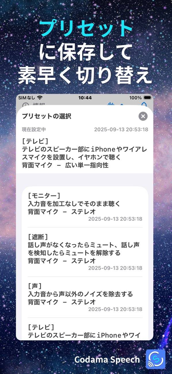 - 人の声が聞こえたら認識して録音。マイク出力も調整できる