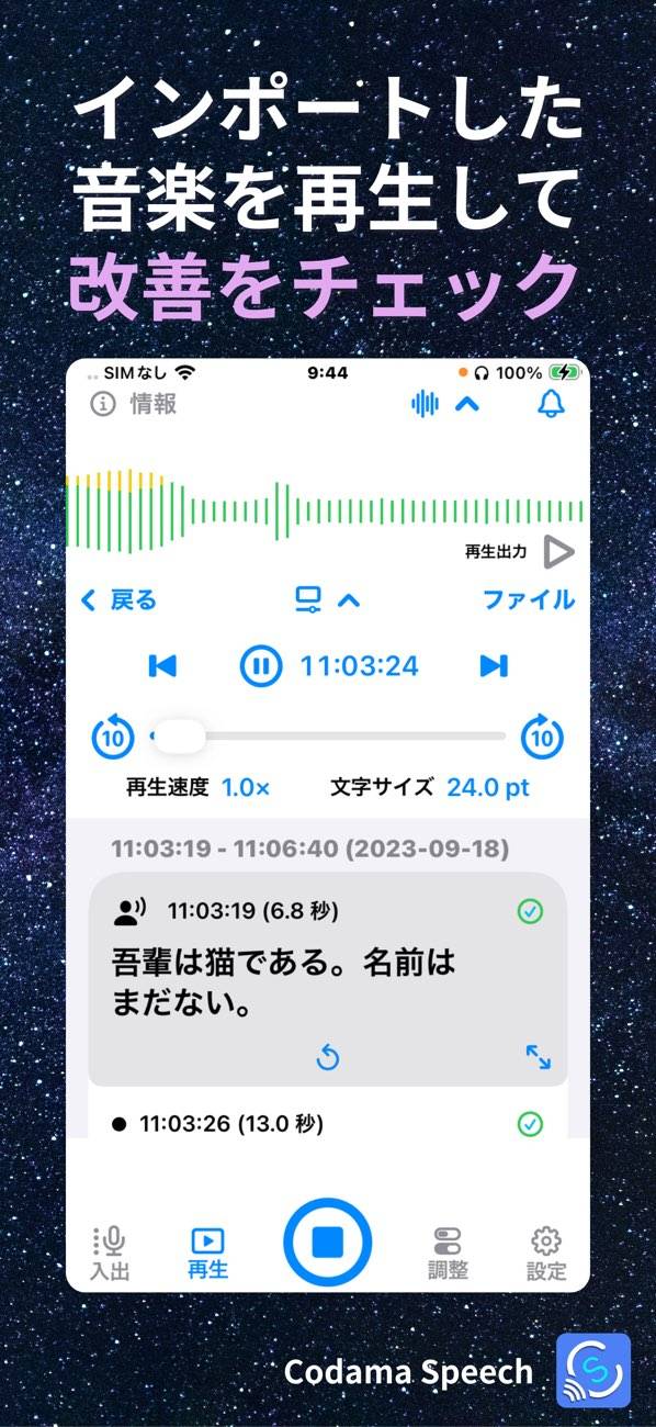 録音した音声をテキスト化して内容を確認できます。聞き取れなかったときは、こちらで確認もできるので便利。認識精度はそこそこ高く、文字の変換も自動で行ってくれます。