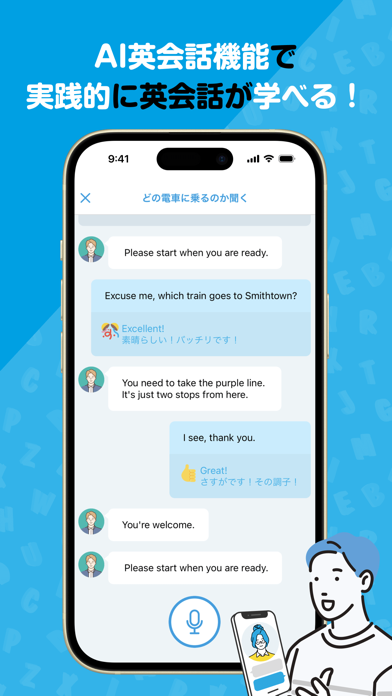 - 学習した内容をAIドリルで復習。基本的な挨拶から挑戦できる