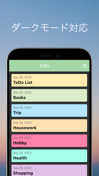 一画面に複数の付箋メモを貼り付けられる、タスク管理アプリ。風景写真の背景に、自由にメモを貼り付けられます。ワンタップでスクショもでき、画像をロック画面やホーム画面に設定すればやることを忘れることも無いでしょう。
