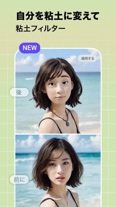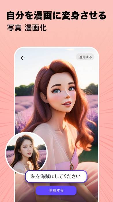 カートゥーンイラスト風、ファンタジーキャラ風などのフィルターを搭載。生成には自撮り画像が10枚ほど必要なものがあるので、あらかじめ用意してから利用してください。