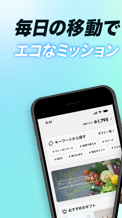 散歩、自転車、電車などの移動でマイルをため、ギフトと交換できるアプリです。位置情報から移動した速度と距離を読み取り、マイルに換算してくれる仕組み。毎日のお出かけがちょっとしたお小遣い稼ぎになります。