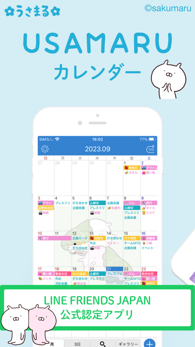 ま~るい顔とつぶらな瞳がチャーミングな『うさまる』のカレンダーアプリ。カレンダーの背景がうさまるになっており、数々のイラストから好きなものを設定できます。