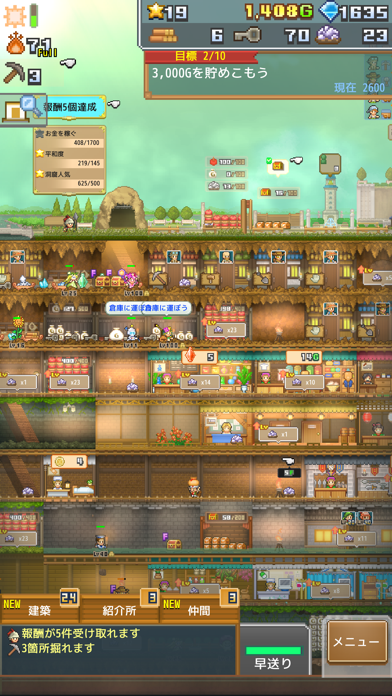 開拓に必要な施設や人員補充を行ったり、施設や冒険者の強化を行ったりとさまざまなやりこみ要素が満載です。