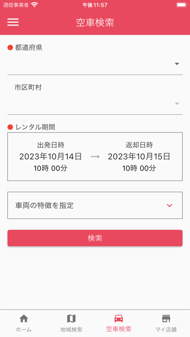 - 借りたい場所を選ぶだけで、空いている車をすぐに検索できる