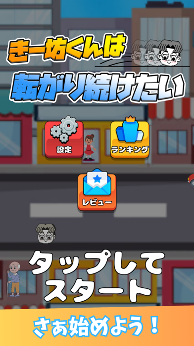 転がるきー坊くんを操作して、距離を稼ぐカジュアルゲーム。タップで進むルートを変更できるので、人に当たらないルートを進んでいきましょう。1回でも当たってしまうとゲームオーバーという、ちょっぴりシビアなルールです。
