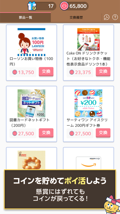 交換コインは、Amazonギフトカード、デジタルギフト等の様々な景品と交換することができます。