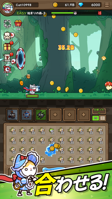 猫が勇者となって迫る敵と戦う、さまざまな要素てんこ盛りの放置RPG! 放置ゲームとRPGのほか、マージパズルやガチャなどのシステムも組み込まれています。