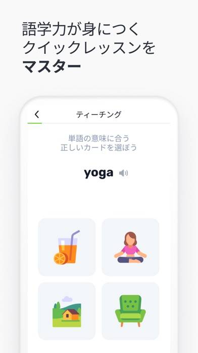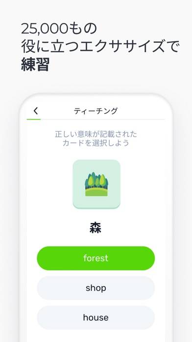 - 4択などの簡単な形式で、手軽に単語を覚えられる言語学習アプリ