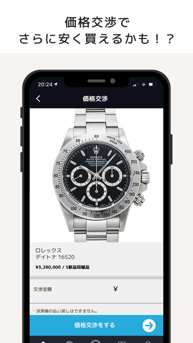 高級ブランド時計やバッグの個人間取引が手軽にできるアプリ。厳格なダブル鑑定により、偽物や状態の悪い商品は出品できない仕組みになっています。また価格交渉機能で理想の価格で取引が可能。万が一のときには返品保証もあるため、安心してお買い物できるでしょう。