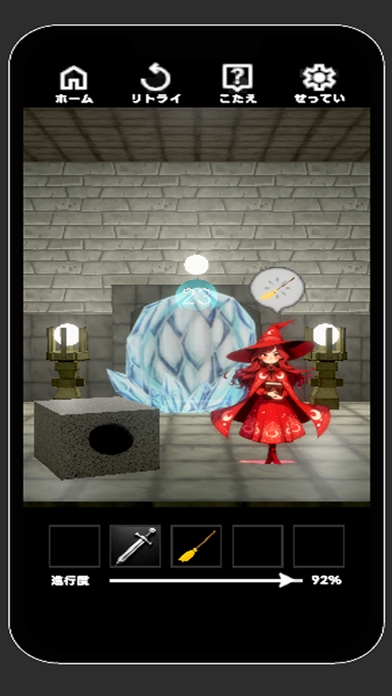 ファンタジー世界風の神殿を舞台にした24ステージの脱出ゲーム。ただの脱出ゲームではなく、モンスターとの戦闘も楽しめます。難易度は初心者にもやさしすぎるぐらいで、本格的な作品を求めている人には物足りないかも。オフラインでも遊べるので、通信環境を気にせず楽しめます。