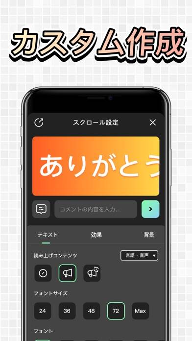 電光掲示板のように右から左へと流れるメッセージを表示できるアプリです。テキスト読み上げ機能があることや、背景の種類が豊富な点が特徴。愛の告白からイベントの応援まで、さまざまなシーンで活躍します。