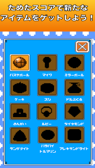 キャラクターやボールなどをコインで購入できます。1商品につき100コインほど必要。バスケットボールのほか、ケーキや宝石なども投げることができ、遊び心も満載なゲームになっています。