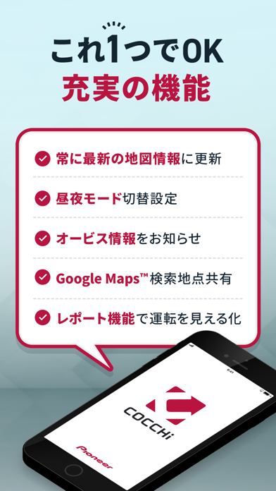 『Pioneer』の誇るカーナビブランド『カロッツェリア』の使いやすさをそのままに。最大6種類のルート提案で最適な道を選択できるほか、渋滞情報やオービス警告なども充実。ルートの音声案内も的確で聞き取りやすく、迷うことなく目的地へ着けます。有料プランを2週間無料で利用できるため、まずはお試ししてみては?
