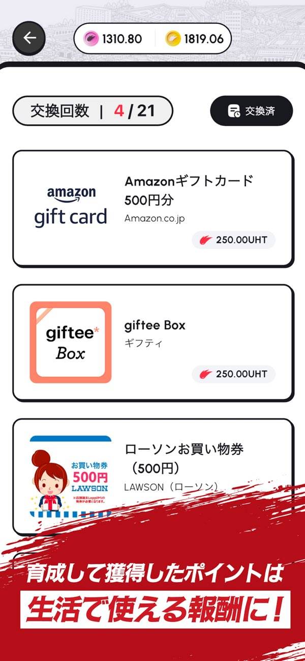 - ゴールで確実にUHTを獲得。毎日コツコツ続ければ少しずつ貯まる