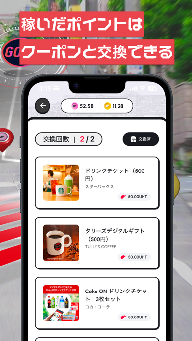 - 仮想マップを探索しながら報酬を獲得。移動に楽しみが加わる