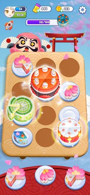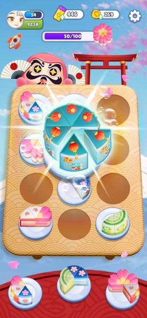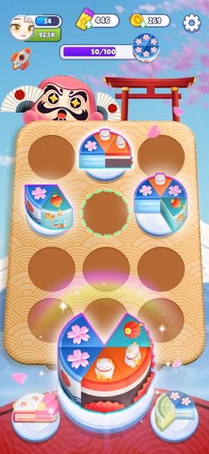 多彩な見た目のケーキを、1ホールのケーキにしていくおしゃれなパズルゲーム。ランダムにいろんなケーキが乗った皿が出てくるので、マスに当てはめていきましょう。