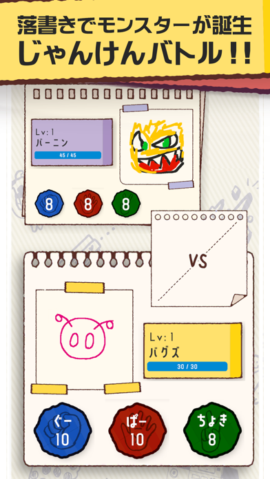 オリジナルのモンスターを描いて戦える、じゃんけんバトルゲーム。相手は同じく、このアプリで誰かが描いたオリジナルモンスターです。理想の姿のモンスターが戦う、夢のようなゲームで遊びましょう!