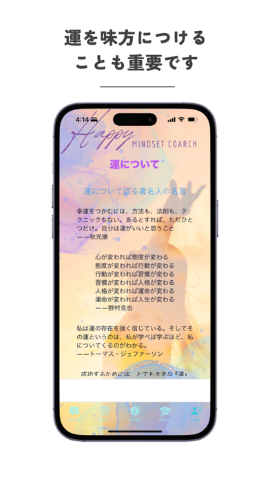 - 運について語る著名人の言葉を収録。考え方の参考になるかも