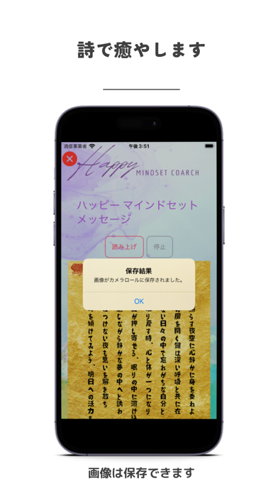 文字で出てくるメッセージの部分は、タイミングによってはちょっと硬い内容になる場合もありますが、画像で表示される詩は、柔らかなメッセージになっています。