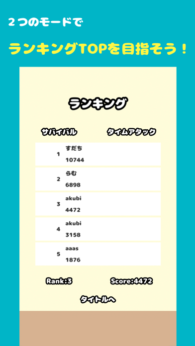 - 「サバイバル」と「タイムアタック」の2種類のモードで遊べる