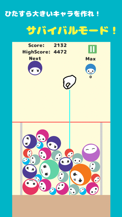 同じボールをぶつけて、より大きなボールに進化させるシンプルパズル。一番大きなボールの完成を目標に、ボールを落としていきましょう。初めはどんどん大きくなっていきますが、徐々に大きなボールへの進化が難しくなっていく、段階的な手応え感が魅力です。