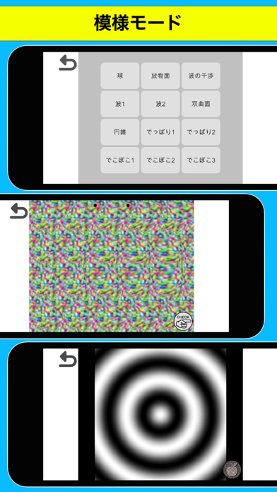 - 乱雑な絵から模様が浮かび上がる不思議体験。目が鍛えられる効果もあり
