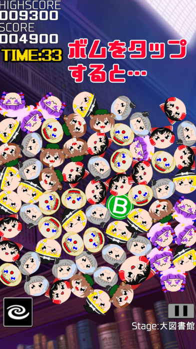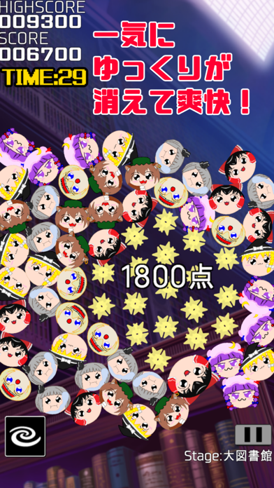 低確率でボムが追加されることがあります。ボムをタップすると、周りのゆっくりを一気に消したうえで大量のスコアを獲得可能。