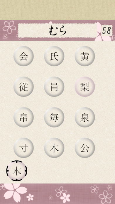 「はやし」の場合、左下の部首「木」と、画面上の漢字を組み合わせて「林」を作ります。お題が「たて」だったら「糸」+「従」。部首はタップで切り替えられるので、画面上の漢字と組み合わせてお題の字を作っていきましょう。