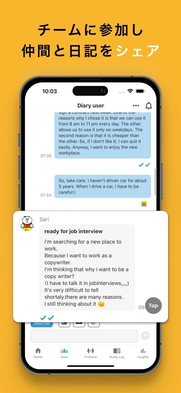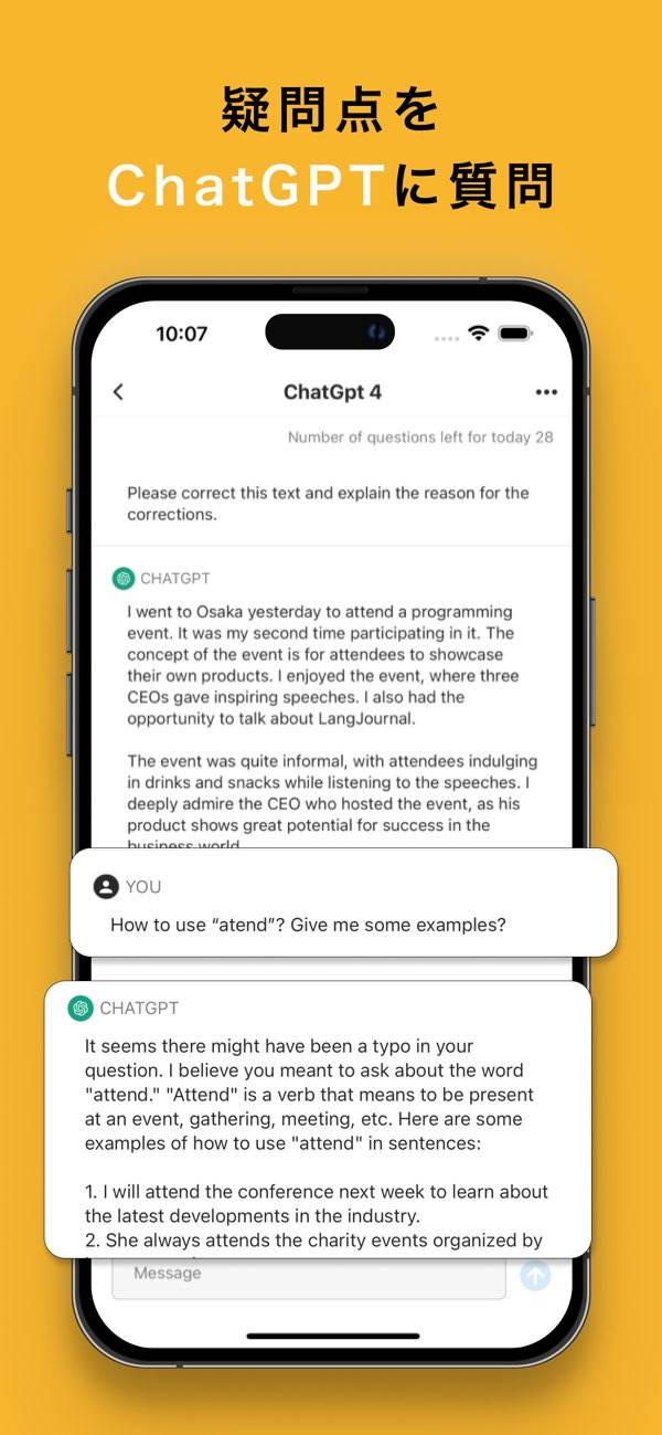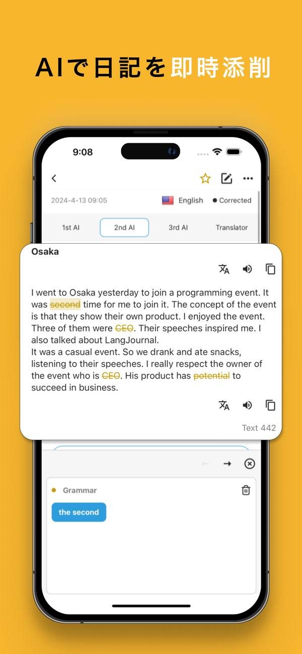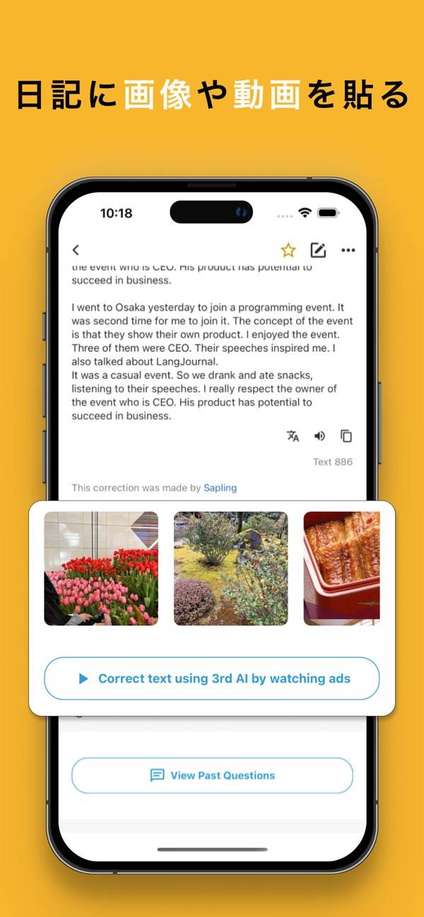 学びたい言語で書いた日記を、AIに添削してもらえるアプリです。3タイプのAIを搭載しており、文法やスペルの間違いを見つけてくれます。