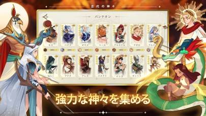 性能や特性の異なる多数のキャラクターが登場。美麗に描かれた神話上の神がおり、ガチャや課金などで手に入れられます。キャラクターが重複すると強化ができ、敵に与えるダメージ量などが増加する仕組みです。