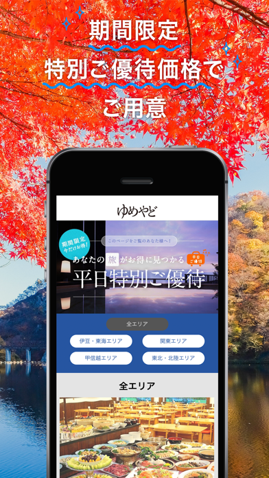 日本全国にある温泉宿で、平日に泊まれるお得なプランを紹介。もちろん食事付き、露天風呂付きの部屋もあり、全国の旅館に対応しています。また、初回ダウンロードクーポンも配布しており、より安く泊まれるのがうれしいところです。