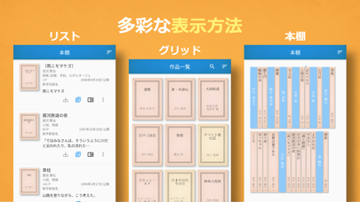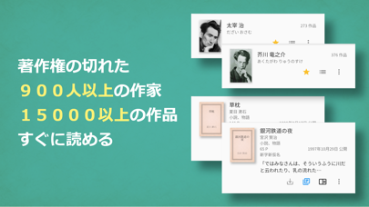 夏目漱石や芥川龍之介といった有名作家の作品を無料で読めます。17,000冊を超える作品が並び、思い出の一冊とも気軽に再会できるのが魅力。検索機能も充実しており、作家名やジャンルなどからさっと作品が探せます。