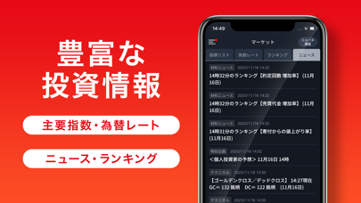 取引に不可欠な情報は、リアルタイムで手に入れることが重要です。主要な指数や為替の動き、ニュース、そして銘柄のランキングなどが常に更新。加えて、テクニカル指標を含んだ詳細なチャート分析ができます。市場のトレンドを掴むための情報収集が簡単に。