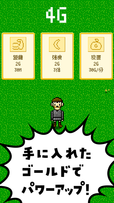 モンスターを倒して集めたコインで、強化できます。強化できるのはブーメランが飛ぶ距離、一回投げたときに倒せるモンスターの数、ゲームを放置したときに集められるコイン量です。