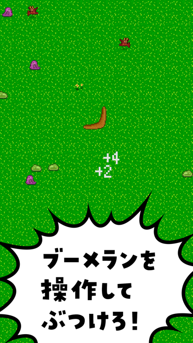 - 投げたブーメランを左右に操作して、モンスターを連続で倒す快感