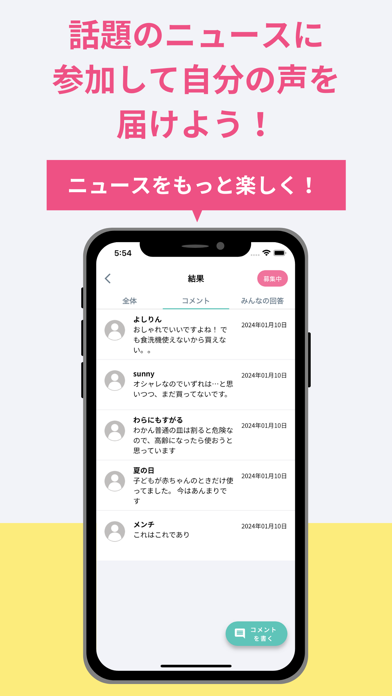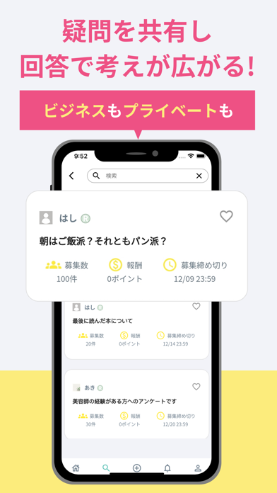 - 自分でアンケートを作って、ほかのユーザーからの意見をチェック