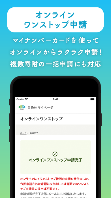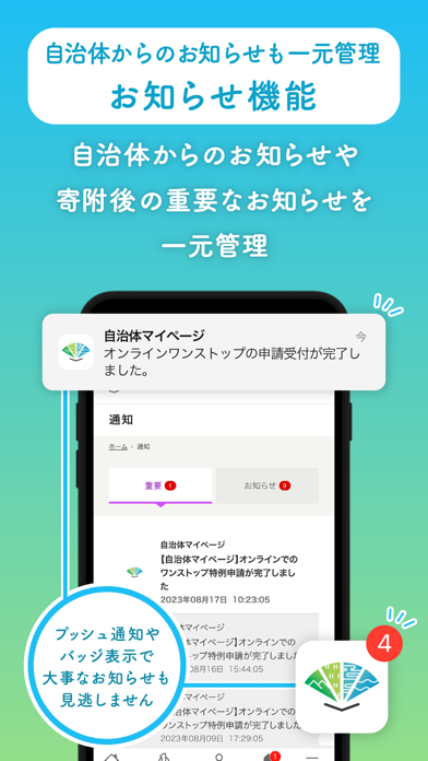 - 自治体からのお知らせを見逃さない! 申請受付の完了もアプリで通知