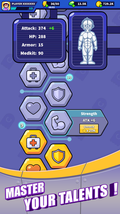 ステージで獲得できるコインなどで、キャラを強化できます。基本ステータスを上げるほか、コンテナから手に入る武器を装備したり、強化したりが可能。コツコツ育成して、長くサバイバルを生き残りましょう。