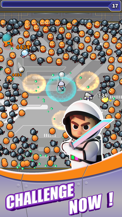 エイリアンからの侵攻に立ち向かうサバイバルアドベンチャーゲーム。序盤はナイフ1本ですが、エイリアンを倒すと得られる経験値でレベルアップすると、ランダムに3種類の武器が表示されます。その中から1つ選び、徐々にキャラを強くしてなるべく長い時間を生き残りましょう!
