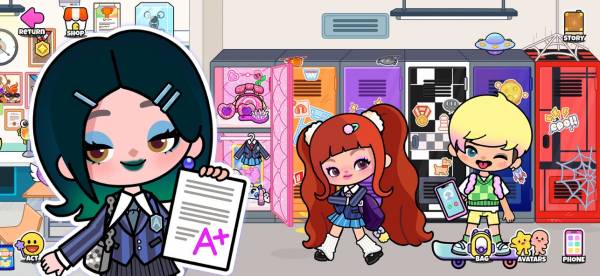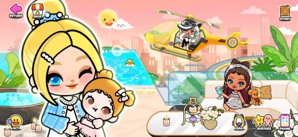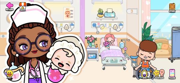たくさんの服やパーツでキャラクターを作り、学校や病院、ショッピングモールなどのエリアを自由に行き来しながら、思い思いの毎日を組み立てていきます。