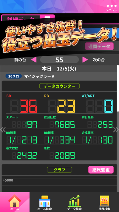 - ホールの出玉情報がわかるから、狙い台を見つけて勝ちにつなげられる