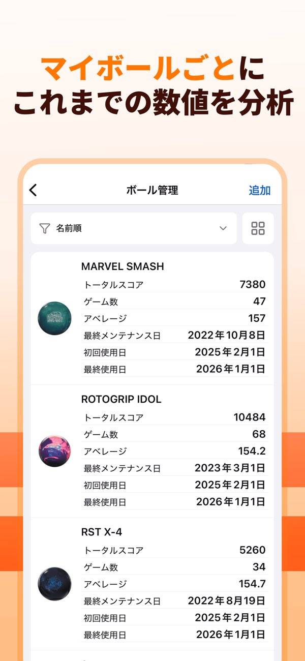 - 最高スコア・アベレージ・ストライク率など、投球データを詳細に