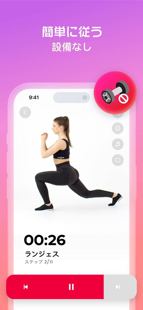 質問に答えていくと、あなたの身体に合ったトレーニングプランを考えてくれるアプリ。ワークアウトの一つひとつを動画とナレーションで解説してくれます。普段の運動量からプランを組み立ててくれるので、運動が苦手な人、いきなり激しい運動が厳しい人でも安心。1日目の運動は6分から、という易しいプランもありますよ。