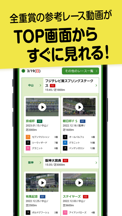 画面上部のタブをタップすると、JRAと地方競馬を切り替えられます。JRAは土日のみ、地方競馬は平日も開催されているので毎日競馬を楽しめるでしょう。レース動画やジョッキーへのインタビュー記事など、情報が満載です。