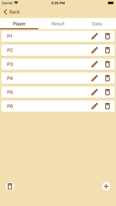 「Player」がスタート地点、「Result」がゴール地点の項目になっています。ペンのマークをタップすると項目を編集が可能。あみだくじの内容は、「Data」から保存することもできます。