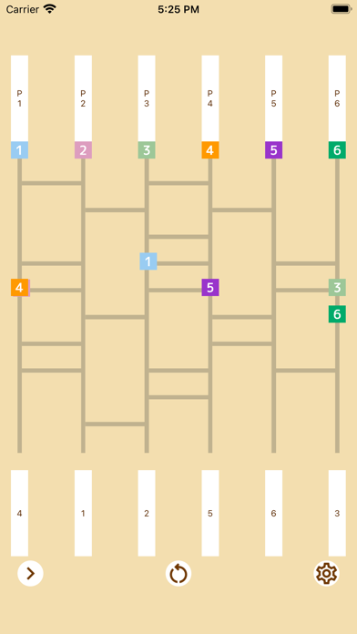 ランダムに横線が引かれ、スタート地点の項目がゴールへ向かって動いていきます。どれがどの結果になるか、眺めて楽しめるのがおもしろいところ。アニメーションを早送りすることもできます。
